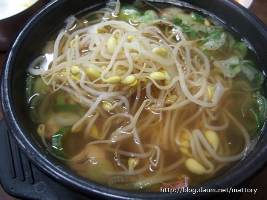 국물을 한 술 떠보면 콩나물국밥 특유의 기분 좋은 단맛이 입안을 자극합니다 인공조미료 맛은 거의 없
