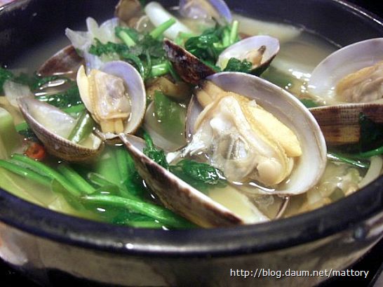고 감칠 맛을 낸다고 인공조미료를 넣어서 기분 나쁜 짠맛이 나는 게 아쉽더군요 어차피 조개를 끓이면