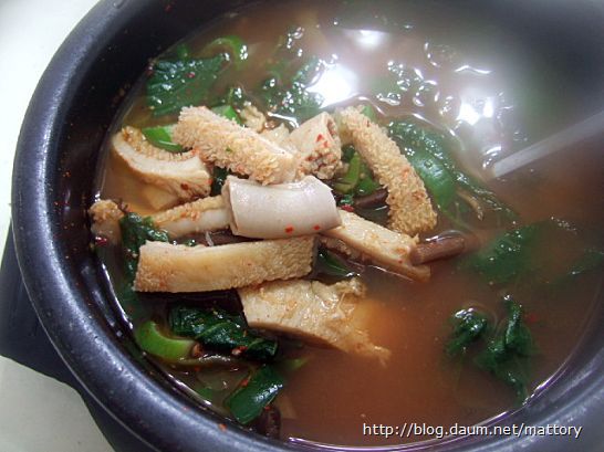 건더기는 주로 양과 곱창인데 그런대로 푸짐하게 들어 있습니다 국물은 상당히 얼큰하면서 시원합니다
