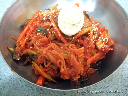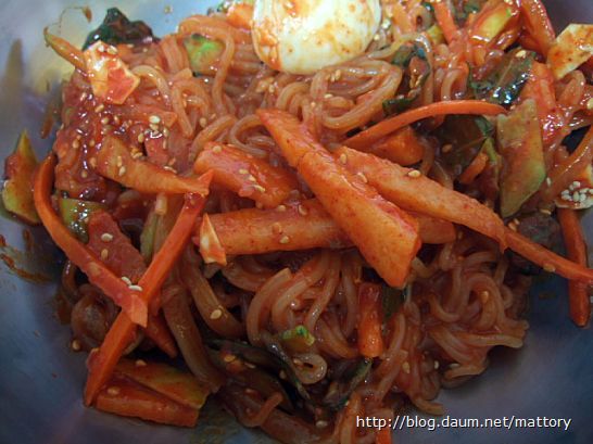 쫄면에도 깻잎을 넣었습니다 할머니가 깻잎을 상당히 사랑하시는가 봅니다 그리고 떡볶이와 마찬가지로