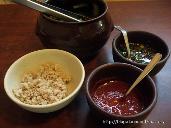 양념장을 조금 첨가해서 먹어보니 얼큰하면서 시원함이 가중되어 해장에도 좋을 듯싶습니다 뚝배기에
