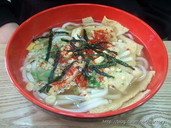 이것은 어묵국수(2500원)로 가락국수와 똑같은데 얇은 어묵만 첨가한 것입니다 국물에 어묵을 넣기 전