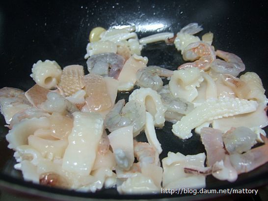 그리고 새우와 오징을 볶습니다