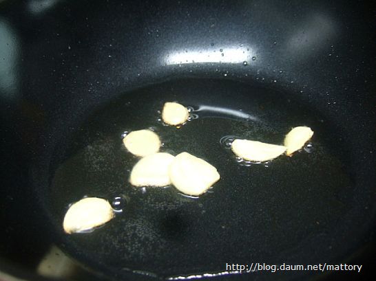 팬에 기름을 두른 후 마늘을 볶습니다