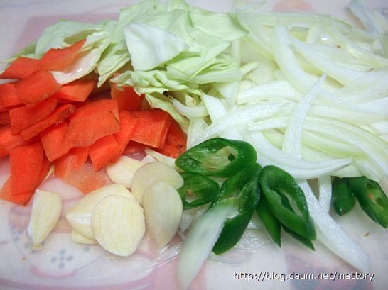 마늘은 저미고 야채들은 적당한 크기로 썰어둡니다