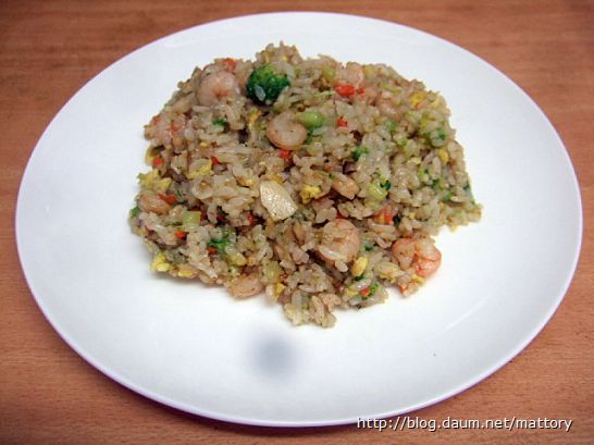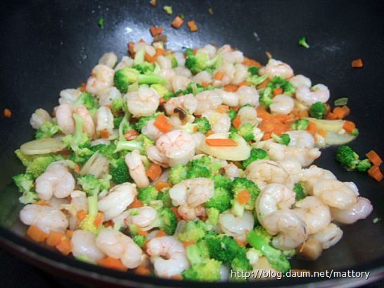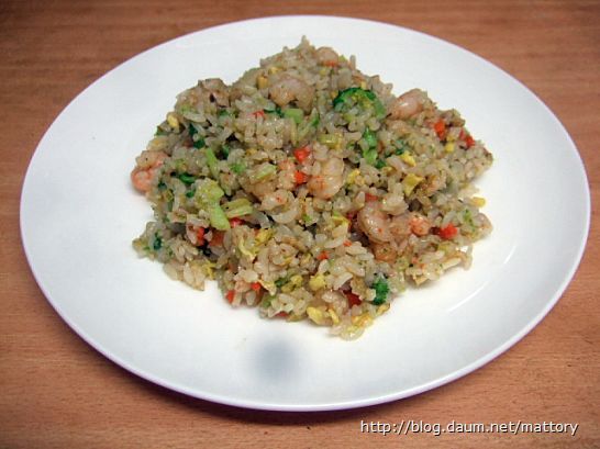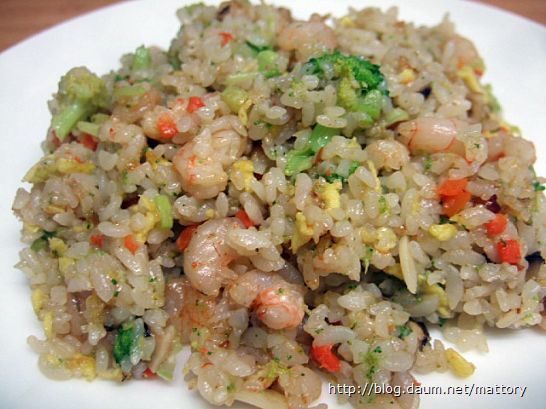 새우를 끓는 물에 데친 다음에 볶아야 되는데 그냥 볶았더니 수분이 많이 생겨서 밥이 고슬고슬하게 볶아