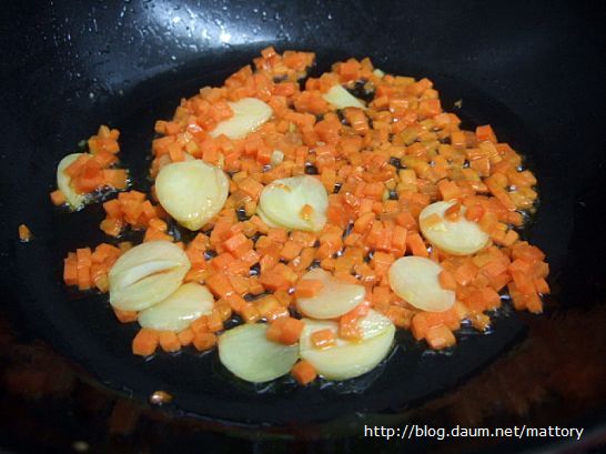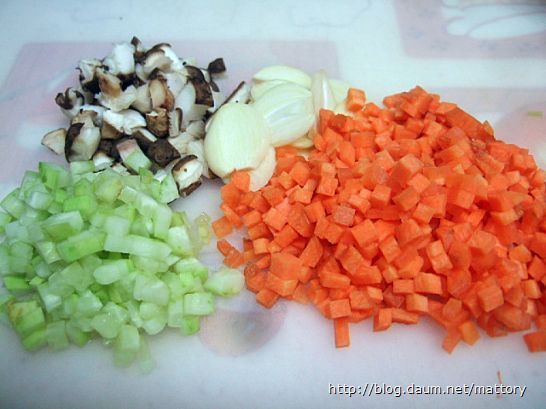 마늘을 저미고 표고버섯,당근,오이는 작게 썰어둡니다