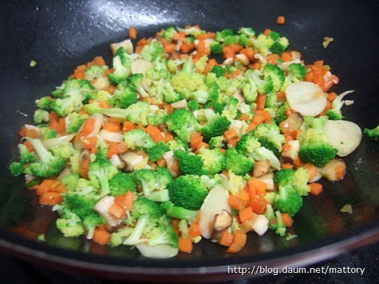밥(2공기),브로콜리(100g),새우(150g),달걀(1개),당근(1/4개),표고버섯(1개),오이(1/3개),마늘(2개),간장