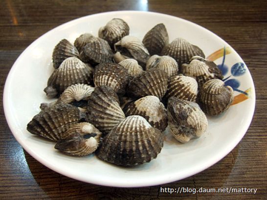 밑반찬들과 밥을 내오기 전에 먼저 삶은 참꼬막이 가져다줍니다