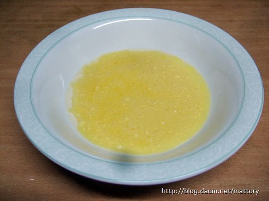 달걀을 풀고 파마산치즈 가루를 고루 섞습니다