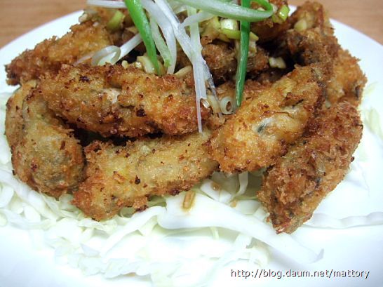간장소스를 곁들인 굴튀김입니다