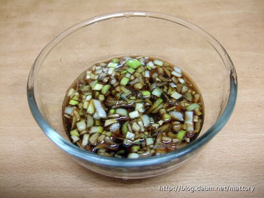 다진대파(2큰술),파채(약간),다진생강(1작은술),설탕(2/3큰술),진간장(2큰술),식초(2큰술),참기름(약간)