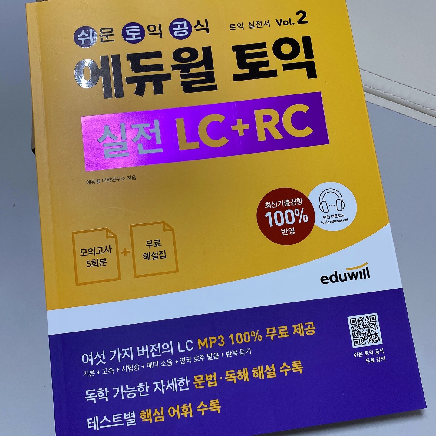 "에듀윌 토익 실전 LC+RC"를 소개하려고 해요.