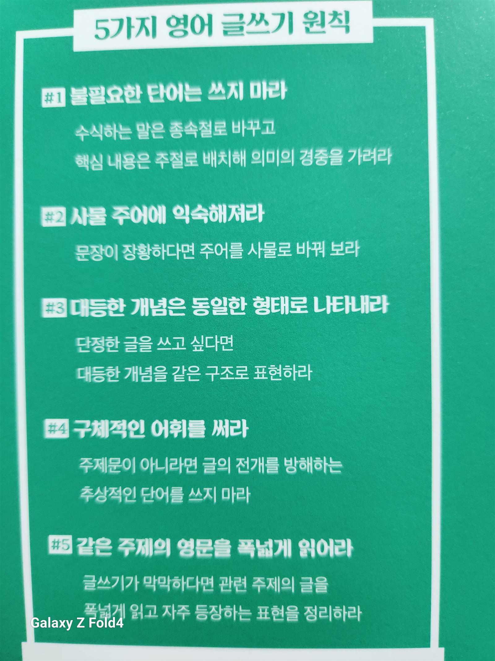 특히 영어글쓰기의 5대원칙은 굳이 영작이 아니더라도 자기소개서를 준비하는 취업준비생에게도 바로 적용할 수 있는 팁이다.