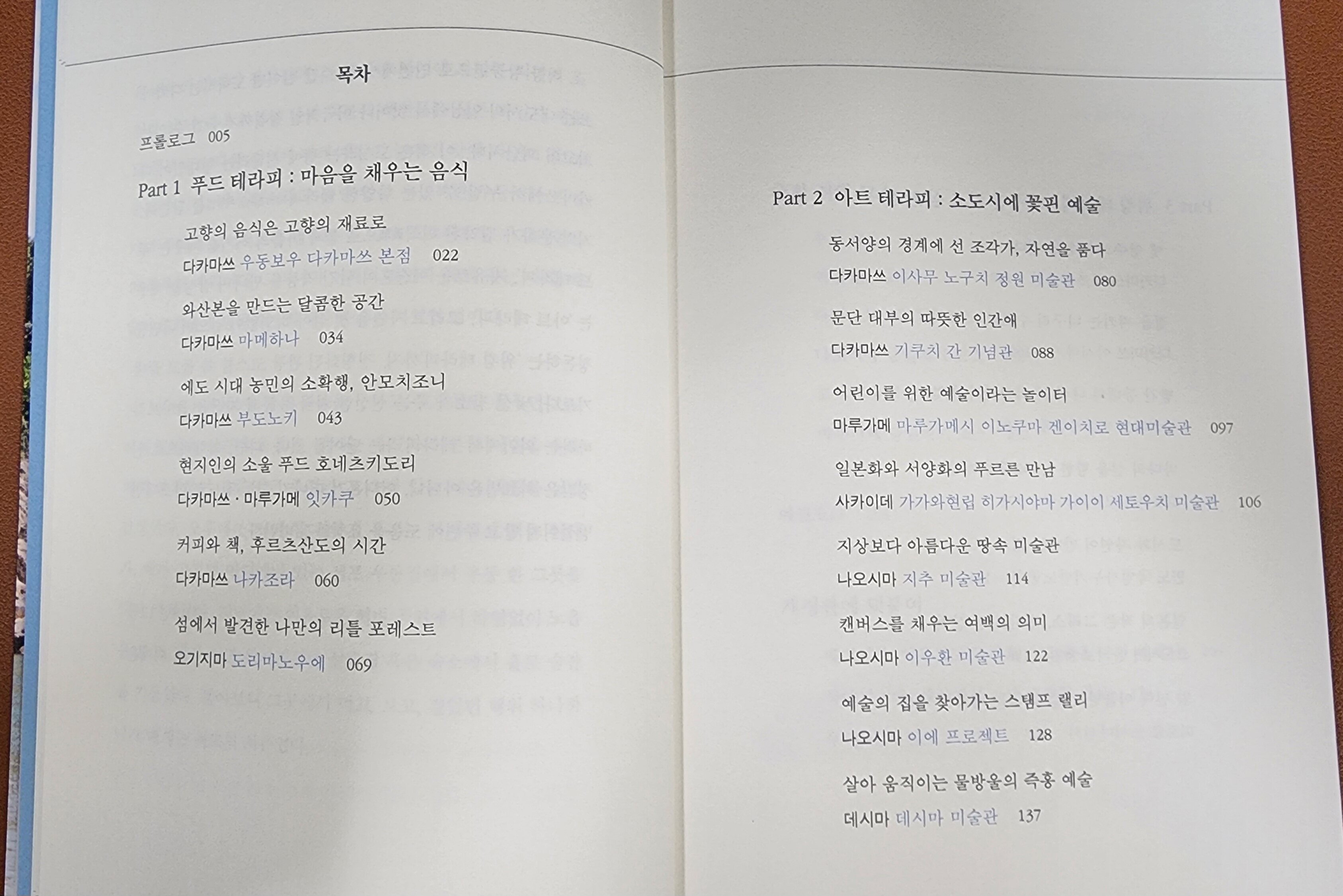 책은 음식, 예술, 길이라는 주제에 맞게 크게 세 부분으로 나뉜다.