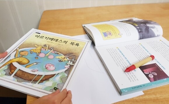 배의 구조나 정의 특히 물에 뜨는 원리까지 넘어오는데도 한참 걸리더라고요. ^아르키메데스의 부력에 대한 부분이 나오니 또 아는척을 해 주십니다.