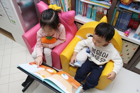 누나가 집중해서 책을 보는 모습에