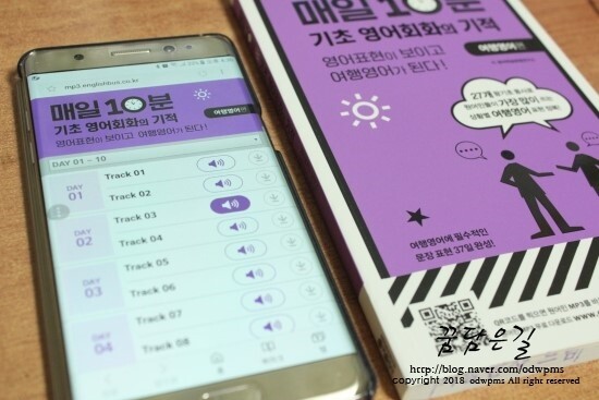 기본적인 영어 문장 이해는 ​<매일 10분 기초 영어회화의 기적 생활영어편>​ 교재로 하고이와 병행해서 스마트 폰으로 QR코드 찍어서 반복적으로 따라 말하기를 복습하다보니, 이제는 표현하고 싶은 문장이 입에 붙어 말이 자연스럽게 나온다,​