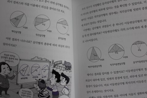 비록 중 2수준의 내용이라 아직 울 아이에겐 생소한 용어이지만, 삼각형에 대한 하나의 스토리 텔링으로 삼아 이해 하니 그대로 받아 들이는듯 하다.