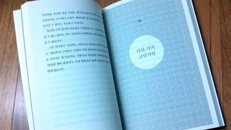 책속에는 아들의 죽음과 같은 저자 자신의 개인적 비극에 관한 이야기도 나온다. 전작이 고민 끝에 얻은 힘이 강하다라는 뜻이었다면 이번 작품은 고통을 견디면 살아갈 힘을 얻는다는 메시지다. 나는 삶이 의미가 있어서 우리가 태어난 것이 아니라 우리가 태어나서 삶의 의미가 있는 것이기에 현시대에 우리의 불안을 이용하려드는 외부의 힘에 이끌리지말고 우리 내부의 목소리에 시간을 두고 귀기울여야 하는 것이라 생각한다. 고민하거나 고민이 필요한 사람 누구에게나 추천한다. 전문적인 철학적 지식이 없더라도 읽는데는 문제 없지만 등장하는 인문들의 작품이나 사상에 대해서 대략적인 정보는 가지고 있어야 읽는 것이 수월할 것이다.