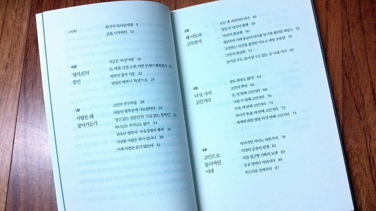 고민의 선구자들|뒤틀린 행복론에 사로잡히다|‘정신 없는 전문인’과 ‘가슴 없는 향락인’|하나님도 부처님도 없어|‘귀족의 행복’과 ‘자유경쟁의 행복’|가난한 사람은 복이 있나니|이제 아편은 듣지 않는다