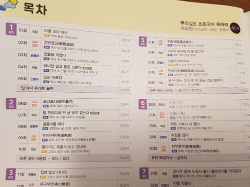 목차를 보면 속담, 사자성어, 관용어 등등