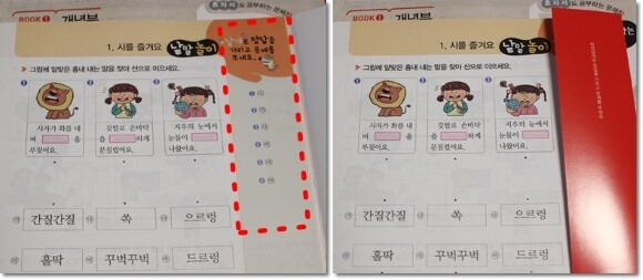 답안을 날개로 가렸다가 풀고 확인할 때는 날개를 열어주면 된답니다.