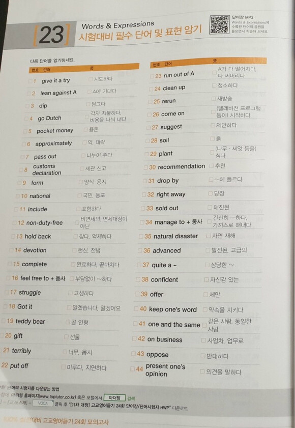 기출문제 다음에 바로 연결하여 받아쓰기를 할 수 있도록 구성하였어요.