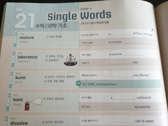 눈으로 익힌 개념을  빈칸 처리하여 한 번 더  정리해볼 수 있도록 하고 있네요.