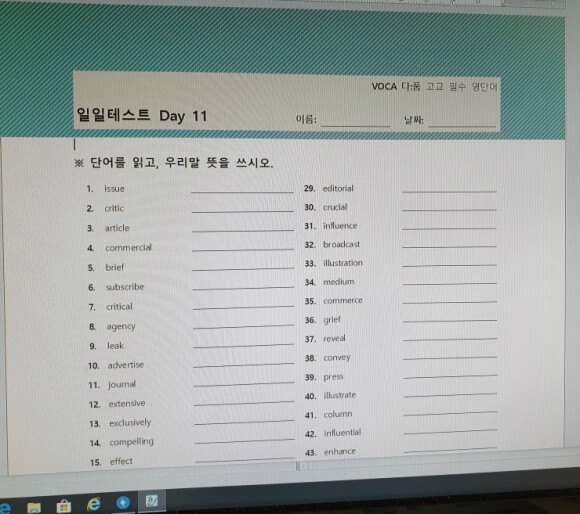 일일 누적 테스트지 /영영 풀이 목록 테스트지/헷갈리는 어휘 예문 파일 등