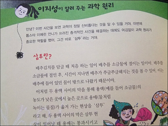 이야기가 끝난 후에는 이지성이 알려주는 과학원리를 통해 우리 몸속의 삼투현상, 사건의 원인이 되고있던 고나트륨혈증에 대해 구체적으로 살펴본 후 또 하나의 원인이었던 스트레스와 해결방안을 모색해봅으로써 혹시나 우리아이들에게도 있을지 모를 현상에 대한 대비도 할수있지 않았나싶네요