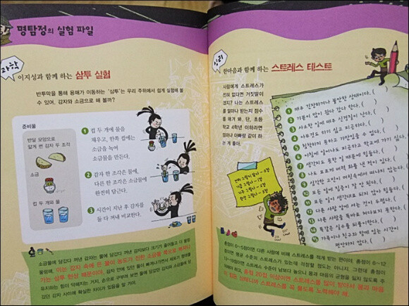 그리고 이어지는 마지막엔 명탐정의 실험파일을 통해 처음 느꼈던 흥미로움과 호기심으로 마무리를 할수 있었습니다. 더 탄탄해진 스토리속에서 더욱 풍성한 교과서속 지식을 만날수 있었던 아이돌 스타의 비밀은 우리 아이들이 무엇을 원하고 관심을 가지는에서 출발하여 더욱 풍성해진 과학적 지식들이 수반되고 있어 풍성해진 이야기였습니다.