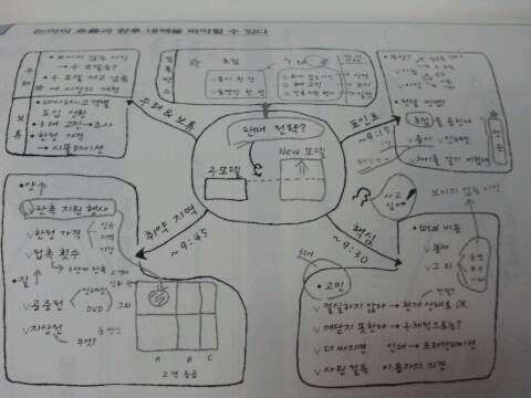 이 그림은 매핑회의 진행을 실제로 보여주는 예이다. 책에는 이용하는 방법을 보여주고 있어서 실제로 사용해 볼 수 있도록 되어 있다.