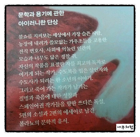 5편의 소설과 2편의 에세이로 남긴 볼라뇨의 문학적 유서라고 볼 수 있는 <참을 수 없는 가우초>는 냉소와 비꼼과 위트가 넘쳐난다.'아,뭐야,이 작가?'하는 키득거림과 그렇지만 결코 가볍게 넘길 수 없는 삶에 대한 이야기는 책을 한 번만 읽고 덮어버리는 나를 여러 번 읽어보게 만들었다.