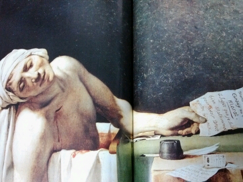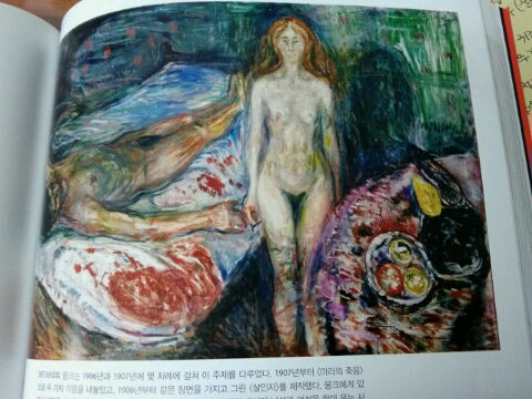 그림을 보던 중 가장 재미있던 그림이 한 사건을 두고 두 거장이 시대를 달리해서 그린 그림이었다. 1793년 다비드의 그림과 1907년 뭉크의 그림은 모두 마라의 죽음을 소재로 하였지만 다비드의 그림은 사실적이고 뭉크의 그림은 사랑과 죽음에 대한 은유가 더 강하게 표현되어 있었다.