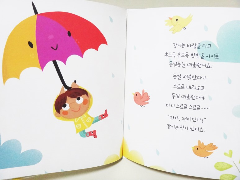 강이는 이제 비오는 날이 좋아졌어요.