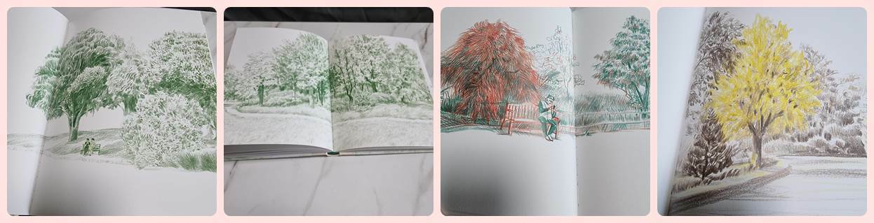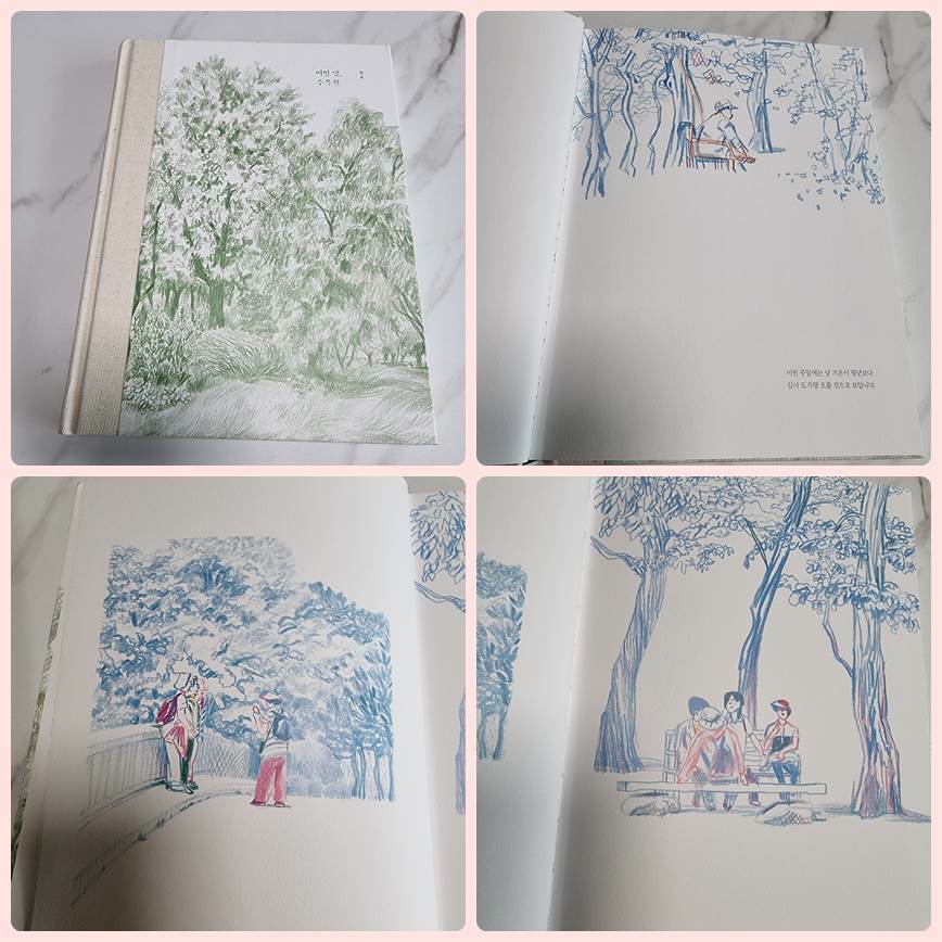 멋진 색연필 드로인과 함께 책등은 패브릭으로 감싸져 멋진 수목원으로 여행을 떠나보려고해요