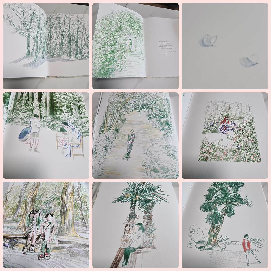 아주 평범하고 자연스러운 숲의 모습을 있는 그대로 아름답게 색연필드로잉으로 담아 따뜻한 숲으로의 초대 인것같아요