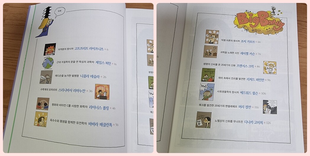 만화가 너무 재미나게 표현돼 있어서 생소한 과학자의 이야기도 쉽게 읽고 배경지식을 쌓을 수 있어요
