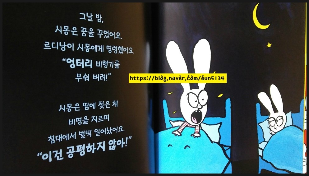 시몽은 벌떡 일어나며, "이건 공평하지 않아!"라고 외쳐요.