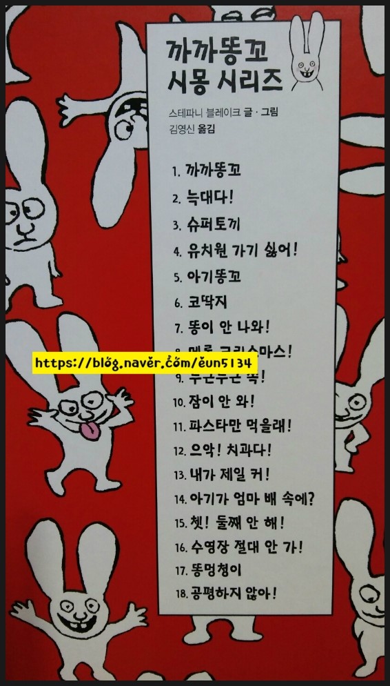 표지를 넘기면 여러 가지 표정의 토끼들이 나와요. 개구쟁이 같아요. ㅎㅎ