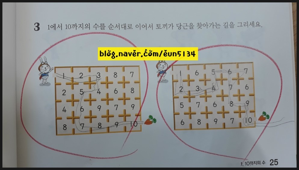 5세 아이기에, 6~7세 문제를 푸니 그럴 수 있다며 위로하고는 설명을 해 주었다.