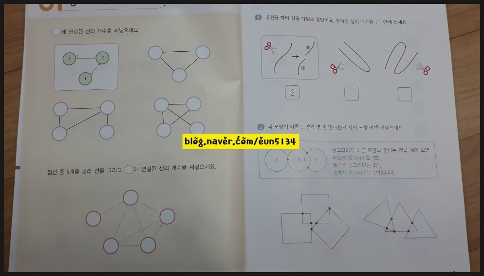연결된 선의 개수를 써넣는 것인데, ​다른 수학 교재에서는 보지 못했었다.