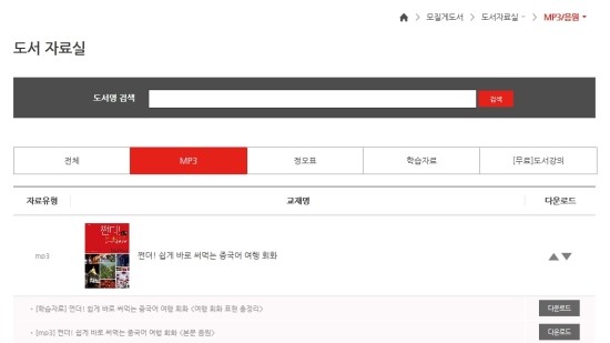다운로드를 클릭하면 학습자료와 mp3, 2가지를 다운할 수 있습니다.