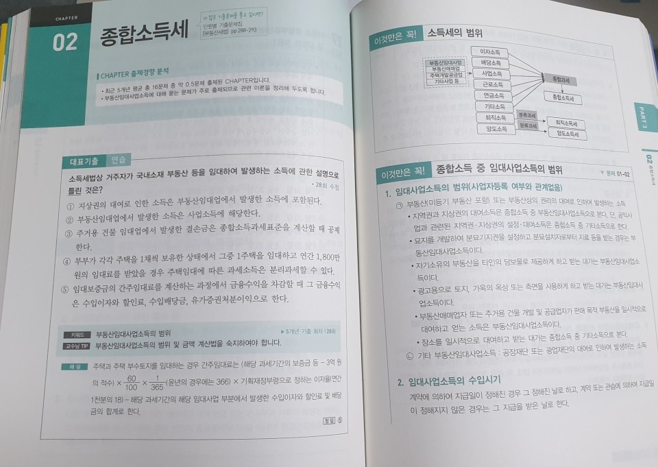 PART3국세의 2CHAPTER 종합소득세의 경우를 보면 소득세의 범위를 한눈에 정리되는 표로 제시해주며 핵심내용을 간략하게 설명해 놓았다. 또한, 문제를 푼 후에 바로 내용에 해당하는 해설과 정답을 적어 놓아서 모르는 부분을 다시 한번 확인할 수 있는 구성이다.