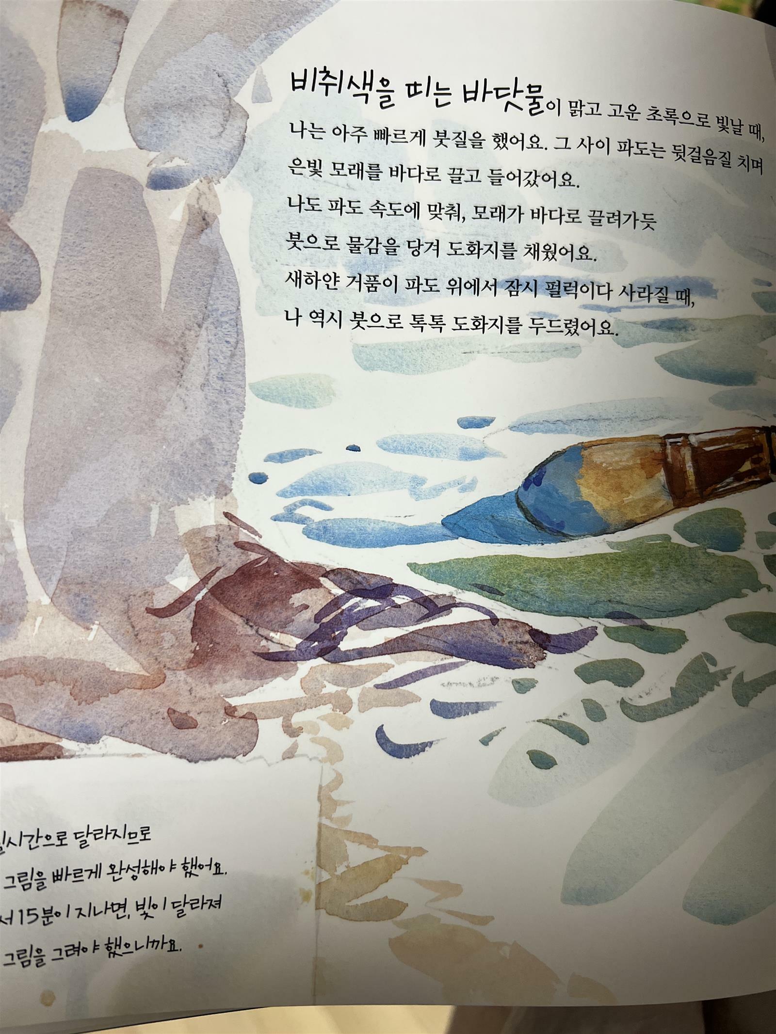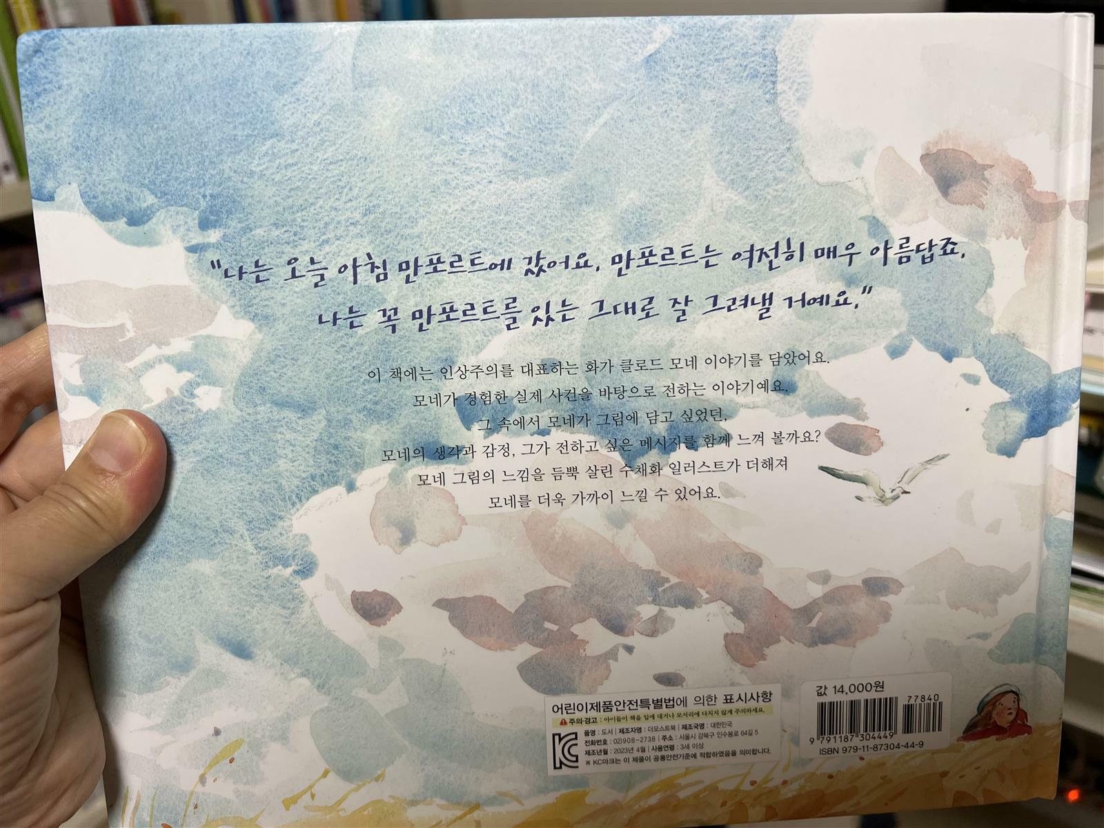 '모네가 그린 하루' 그림책을 읽어 보았습니다. 모네라는 인상주의를 대표하는 프랑스 화가의 하루를 볼 수 있습니다. 모네의 그림은 어떻게 탄생 되었을까? 생각을 하면서 책을 펼쳐 보았습니다. 그림책의 그림이 모네 그림풍과 비슷한 느낌이라서 책 한권을 통해 작품을 보는 듯 하였습니다. 모네는 자신의 그림이 마음에 들지 않거나 원하는 빛이나 색감이 자연에서 나오지 않을 때 화를 많이 냈다고 합니다. 도자기를 만드는 화공들이 마음에 들지 않는 도자기를 깨버리는 이야기를 들어보았는데 모네도 자신의 작품이 마음에 들지 않으면 찢고 바다에 던지고 불에 태우기까지 했다고 합니다. 예술가가 아니기에 그 심정을 전부 이해하기는 어렵지만 자신의 작품에 대한 열정과 자부심이 참 대단한 것 같습니다. 그런 노력이 있을 때 아무래도 멋진 작품이 나오는 것 같아요. 모네는 바닷가에서 그림을 그렸는데 매번 같은 장소에서 그리믄 것을 즐겼다고 합니다. 그 이유는 같은 장소라도 시간과 날씨에 따라 빛이 다르기 때문이라고 합니다. 모네는 참 섬세하고 예민한 것 같습니다. 바닷가에서 그림을 그리기에 물때표를 꼭 확인하는데 어느 날에는 잘못 확인해서 물살에 휩쓸려 가기도 했습니다. 이 책을 보면서 모네의 작품에 더 관심이 많이 가게 되었습니다. 아마도 그림을 보면 모네가 어떤 노력을 하면서 그렸을 지 더 상상이 잘 될 것 같습니다. 아이들괴도 모네에 대해 이야기하며 그림도 한 번 그려보면 좋을 것 같아요. 책 뒷편의 모네의 화풍을 따라해보는 방법이 있습니다. 참고하시면 좋을 것 같네요. 출판사로부터 도서를 제공받아 직접 읽고 작성한 리뷰입니다. #모네가그린하루 #우리동네책공장 #줄리다네베르크 #컬처블룸 #컬처블룸리뷰단