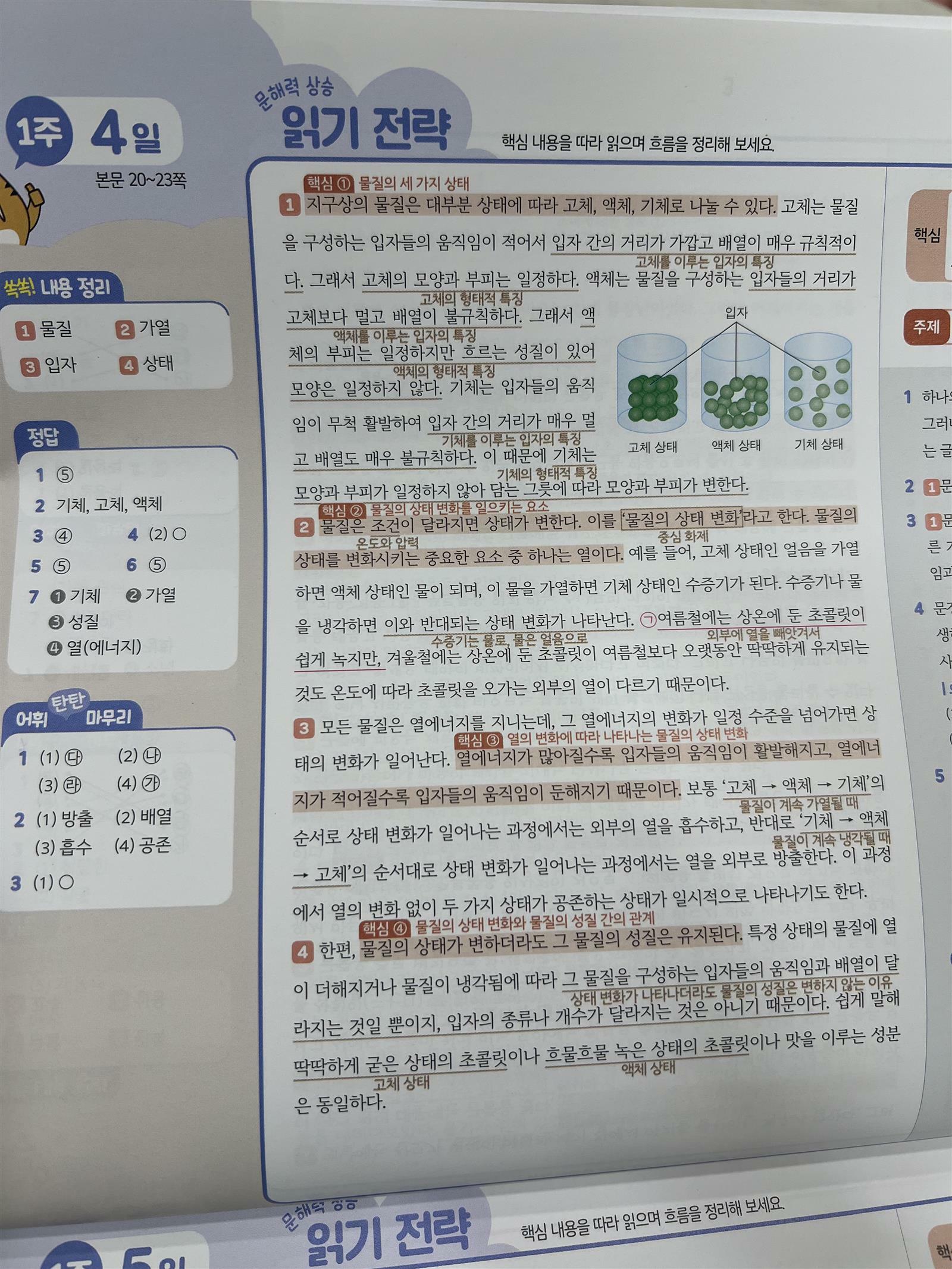 지문을 읽고 그 안에서 어휘를 익히고 반복해서 문제도 풀어보는 형식이라 아이들이 이해학 쉽고 기억하기 좋은 구조입니다. 4주간에 걸쳐서 꾸준헤 공부해 나간다면 아이의 공부력에도 큰 도움이 될 것 같습니다.