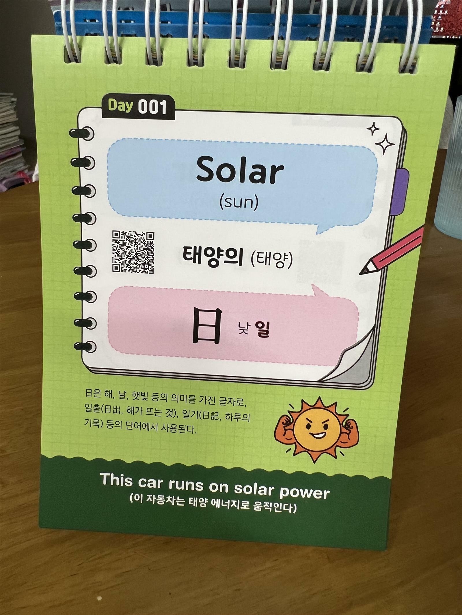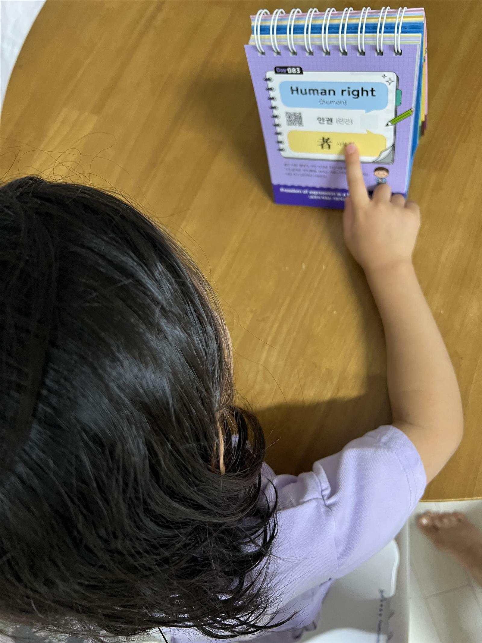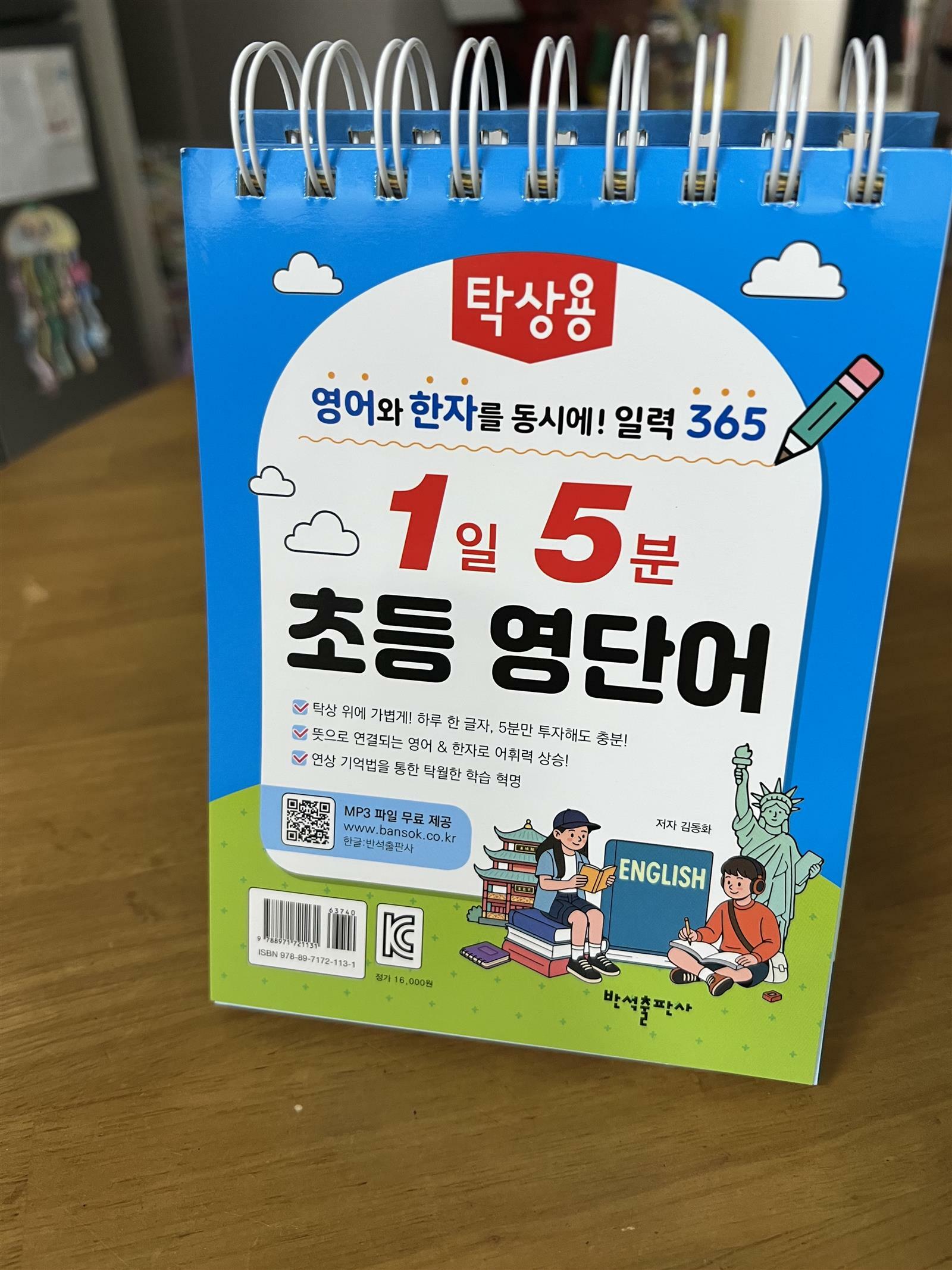 출판사로부터 도서를 제공받아 직접 읽고 작성한 리뷰입니다. '탁상용 초등 영단어' 교재를 아이와 살펴보았습니다. 이 교재는 탁상에 세워두고 자주 볼 수 있어서 좋은 것 같습니다. 무엇보다 한자와 영어 단어를 별개로 외우는 것이 아니라 한번에 연상 학습을 통해 암기하는 방식이라 새롭더라구요. 뜻을 연결해서 암기하는 것이라서 더 오래 기억되는 장점이 있습니다. 일부러 시간내지 않고 밥 먹기 전이나 간식 먹을 때 보려고 식탁에 두었습니다. 아이와 매일 하루 한장만 보는 루틴을 잘 짜면 큰 효과가 있을 것 같습니다. 공부한다는 생각보다는 그냥 스며드는 느낌으로 천천히 여유를 갖고 하는 것이 좋을 것 같습니다. 하루 5분 투자로 1년이면 마스터하도록 되어 있는데 그냥 매일 본다고 생각하면 금방 익혀질 것 같네요. 엄마 입장에서도 부담되지 않고 아이들도 거부감이 별로 없는 효과적인 단어 공부책인 것 같습니다. 20일마다 체크하는 복습도 있고, 사자성어로 어휘력과 문해력을 향상 시킬 수 있도록 수록된 것도 있네요. 이 책의 저자는 아이들과 직접 이 공부법으로 공부해서 효과를 봤다고 합니다. 그래서 더 믿고 확신이 드는 어휘교재라고 생각합니다. 한장 한장 넘겨보면, 영어 단어 발음을 들을 수 있는 큐알코드가 전부 기재되어 있습니다. 모르는 단어는 직접 들어 볼 수 있다는 것도 장점입니다. 무엇보다 발음이 정말 중요하기 때문에 영어 단어만 발음을 큐알도 듣도록 해주신 것 같네요. 하루 한장 읽고 생각하다보면 영어 단어 뿐만 아니라 한자도 연상법으로 익힐 수 있어서 일석이조 인 것 같습니다. 저자는 초등고학년부터 사용하면 좋다고 하셨는데 저는 초등 중학년부터도 영어 교과를 배우니 시작해도 좋을 것 같아요. 매일 좋은 습관 만들어서 아이들과 즐겁게 어휘공부 해보시길 추천합니다. #초등영단어 #반석출판사 #탁상용 #책세상 #맘수다 #책세상맘수다카페