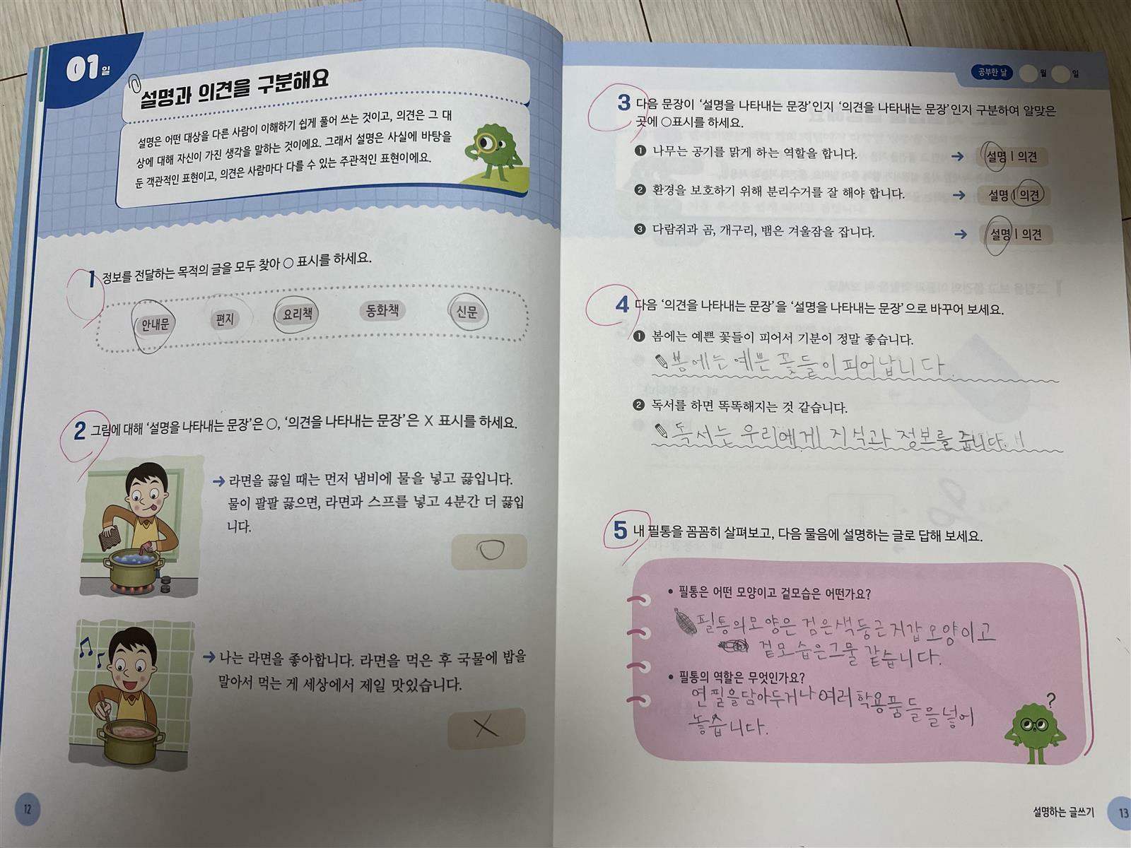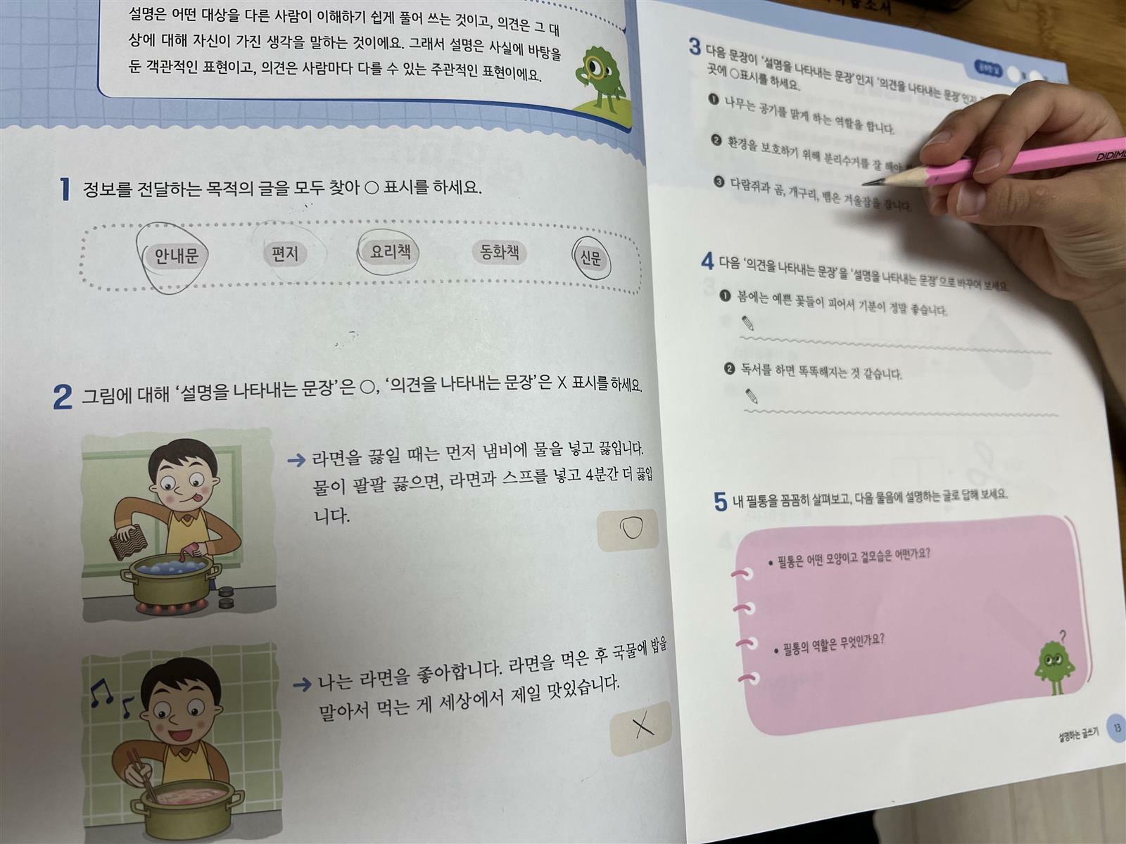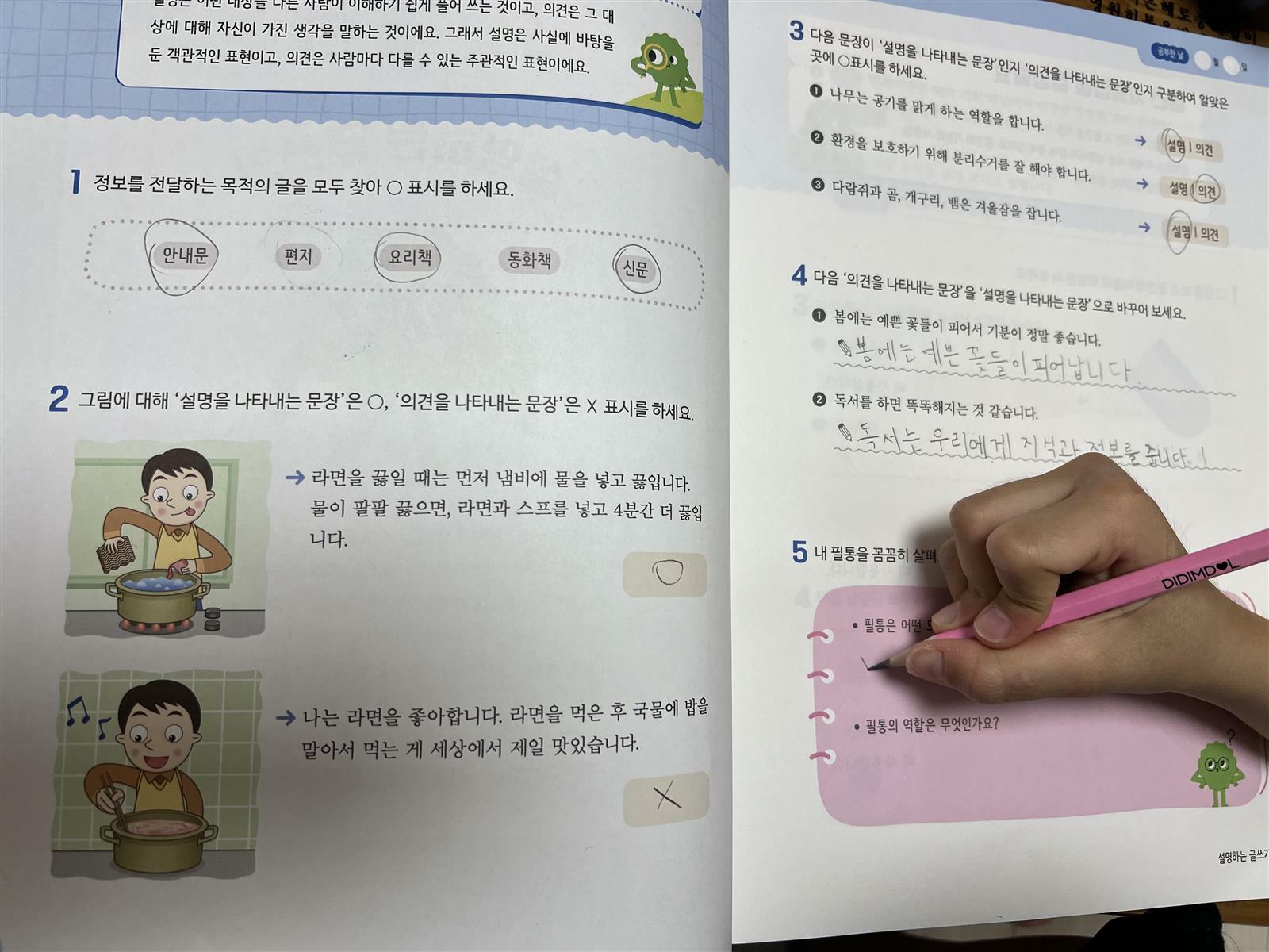 출판사로부터 도서를 제공받아 직접 읽고 작성한 리뷰입니다. '초등처음 글쓰기 논리 표현하기 2권' 책을 아이와 함께 읽어 보았습니다. 이 책은 아이와 집에서 해 볼 수 있는 글쓰기 교재입니다. 2권의 내용은 논리 표현하기라서 초등 중학년부터 함께 풀어보면 좋을 것 같습니다. 저도 아이와 함께 살펴보고 하루에 한장씩 풀어 보기로 했습니다. 이 책은 안상현 쌤의 40일 완성 쓰기 교재입니다. 학교 선생님이 콕 집은 내용들로 구성되어 있어서 학교 수업에도 많은 도움이 될 것 같습니다. 초등 고학년 어휘력에도 도움이 되는 구성이라서 초등 중학년부터 참고하면 좋을 것 같네요. 책은 두껍지 않고 하루 분량이 적은 편이라 아이들이 부담없이 공부하기 좋습니다. 총4가지 주제로 크게 구성되어 있고, 세부적으로는 10개씩 파트가 나눠져서 하루에 하나씩만 공부하면 됩니다. 40일정도면 완북할 수 있습니다. 매일하지 않더라도 일주일에 두세번 하면 좋을 것 같네요. 책의 구성은 오늘 배울 내용을 간단한게 읽어보고 어휘를 익힙니다. 본격적으로 문장을 만들어 보면서 어휘를 정확하게 이해해 나갑니다. 세번째로 짧은 글쓰기를 해보면서 완전히 나의 것으로 습득하는 과정을 거칩니다. 마지막으로는 뒷편에 정답지를 보면서 선생님과 내 생각을 비교해 보기와 알맞은 어휘를 사용했는지 확인합니다. 나만의 생각 말고도 선생님을 생각도 들어보고 나의 생각을 좀 더 확장시켜 볼 수 있는 답지라서 참고하기 참 좋습니다. 초등 저학년의 아이들의 경우는 조금 어려울 수 있으니 1권부터 차근차근 해보시길 추천합니다. 아무래도 현직 초등 선생님 안상현 작가님의 교재라 믿고 아이와 해 보기 좋은 것 같아요. 저도 둘째는 1권부터 차근차근 해보고 이어서 2권 풀어 보려고 합니다. 교과공부에도 도움이 되면서 문해력과 창의력을 향상시킬 수 있는 글쓰기 교재를 찾으신다면 학교 선생님이 콕 집은 초등처음 글쓰기 교재를 적극 추천합니다. #초등처음글쓰기 #안쌤TV #안상현 #체인지업북스 #초등고학년어휘력 #현직초등선생님안상현 #책세상 #맘수다 #책세상맘수다카페