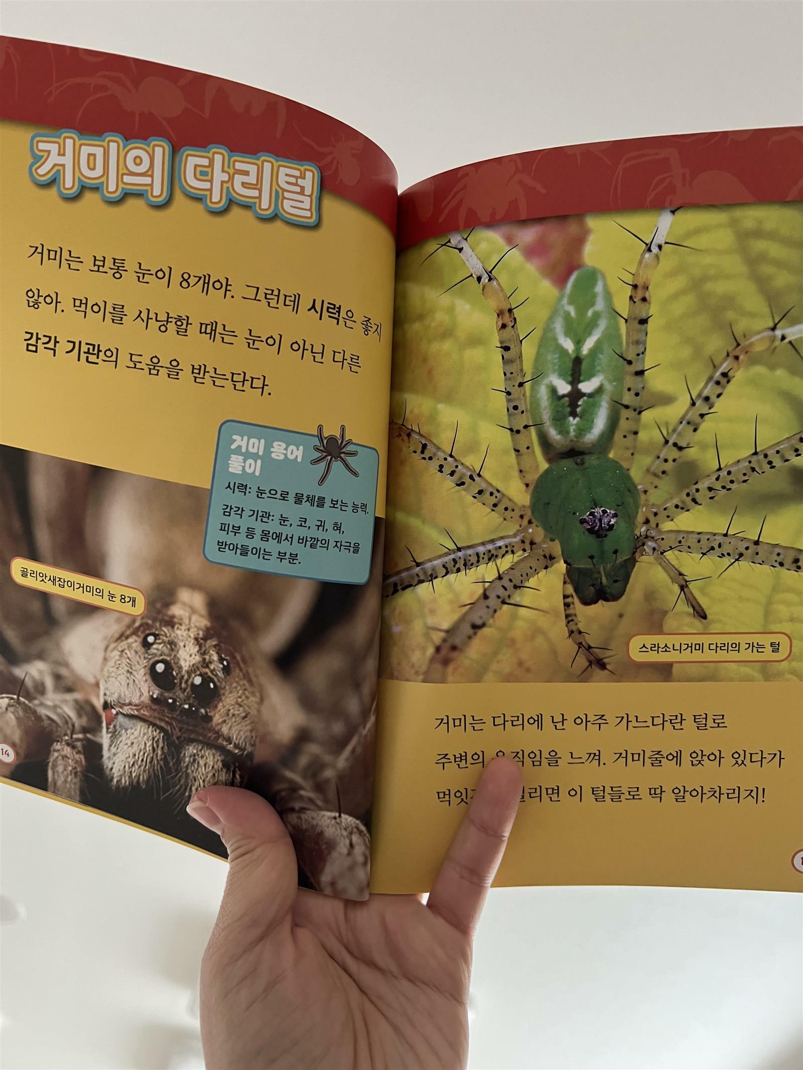 출판사로부터 도서를 제공받아 직접읽고 작성한 리뷰입니다. 사이언스 리더스 레벨1권 거미는 사냥중 책을 보았습니다. 비룡소 출판사에서 출간한 책이라서 믿고 볼 수 있습니다. 책의 크기는 작은 편이고 얇습니다. 하드표지가 아니라서 휴대하기 좋다는 점이 장점입니다. 아이들과 여행이나 나들이 갈 때 챙겨가기 좋아서 자주 손이 갈 것 같네요. 레벨 1 책이라서 글밥은 많지 않습니다. 7세부터 스스로 읽기 시작하는 아이라면 읽어나갈 수 있습니다. 무엇보다 실사진이 나와서 아이들이 호기심을 갖고 집중해서 볼 수 있습니다. 자연관찰책으로 사이언스 리더스가 참 좋은 것 같아요. 또한 레벨별로 글밥이 달라서 비문학 좋아하는 아이들의 읽기용으로 추천합니다. #거미는사냥중 #사이언스리더스 #비룡소 #도치맘서평